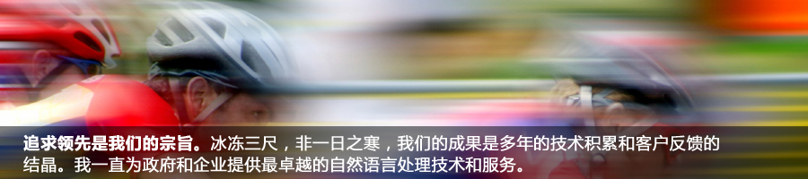 自從成立以來,我們?yōu)榭蛻籼峁└咝Ш椭悄芑男畔⑻幚砉ぞ吆妥稍兎铡T谶@個信息爆炸的時代,如何讓互聯(lián)網上和企業(yè)內部的海量信息為我們帶來更多的價值需要高度智能化的信息處理工具。我們提供的技術能夠高效并且準確的對大量文本信息進行處理、檢索、挖掘、翻譯等工作,并可方便地與信息系統(tǒng)的其他模塊進行整合。